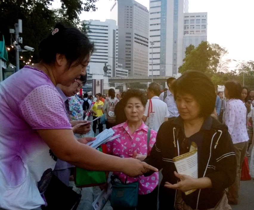 七二零反迫害 泰国法轮功学员集会路人仔细阅读法轮功真相展板