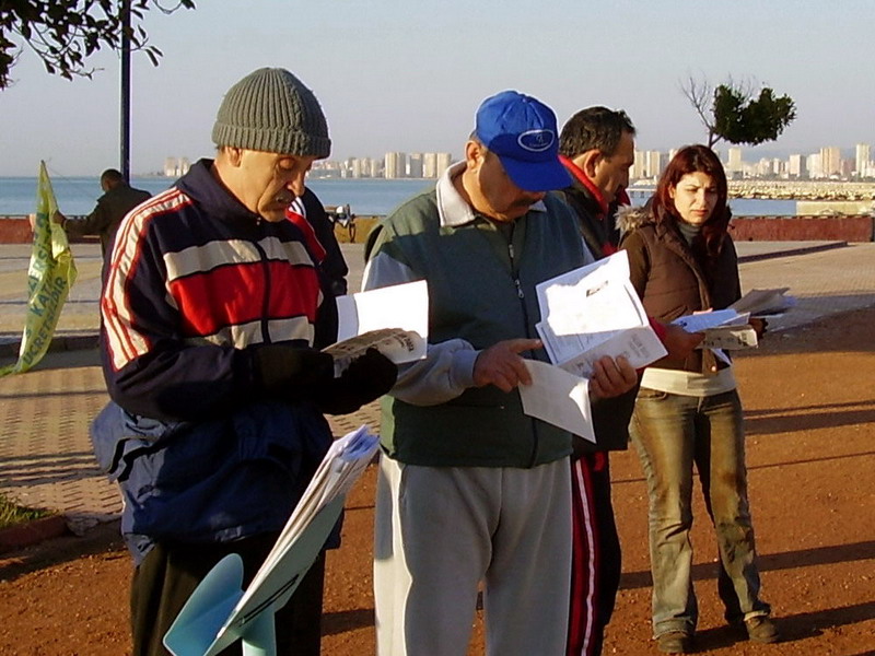 土耳其MERSIN城市的新老学员们在世界人权日洪法讲真相 人们在聚精会神的听
