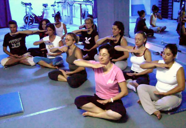土耳其各地学员举行活动,庆祝法轮大法洪传世界十六周年,图为功法演示 2008-5