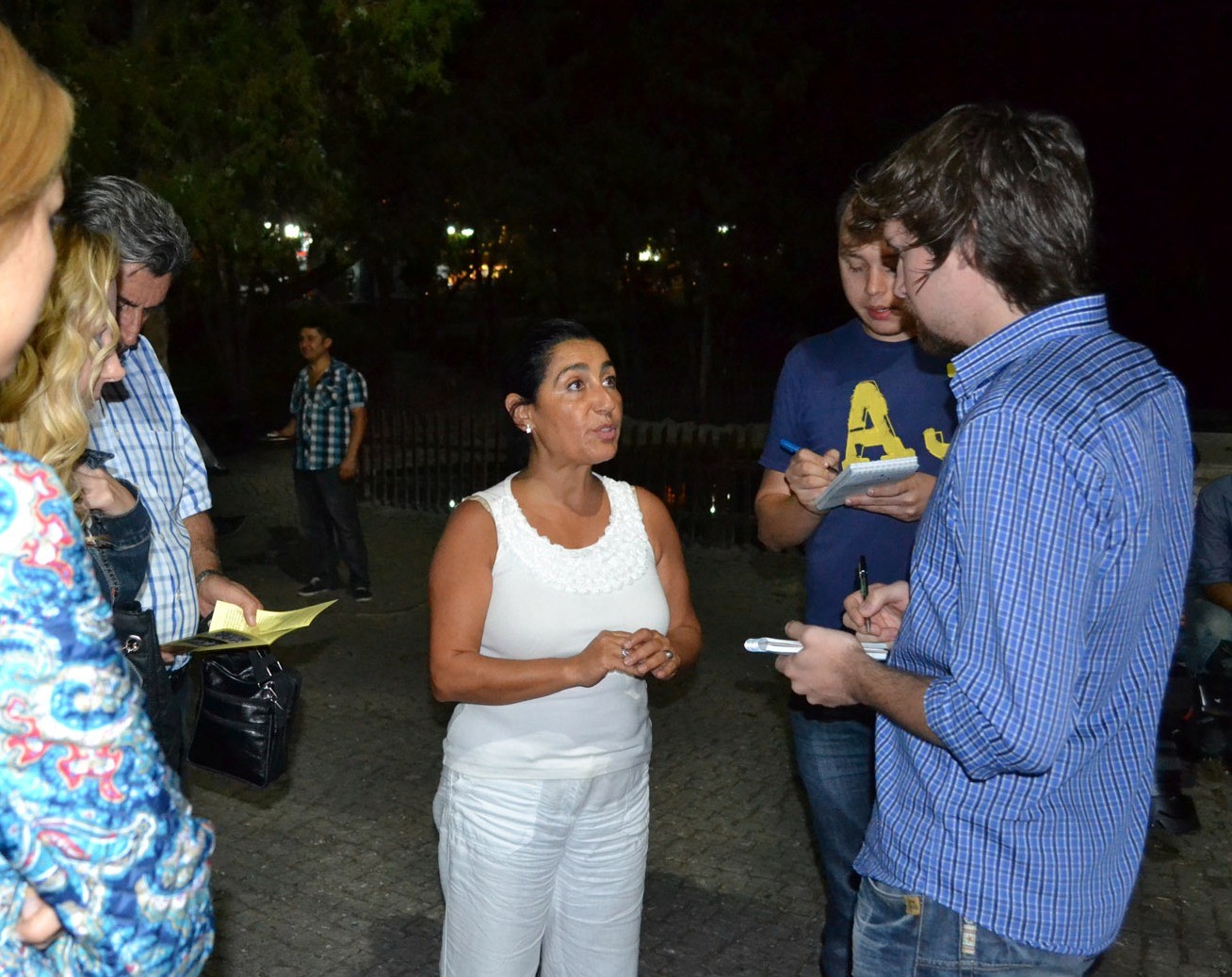 土耳其的新老学员在安卡拉的公园里一起洪法,炼功图为接受STAR电视台的记者的采访2006-6-24至25
