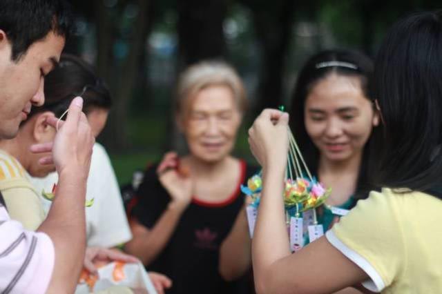 台湾学员在越南洪法纪实--和拿着宣传大法的书签的当地民众合影