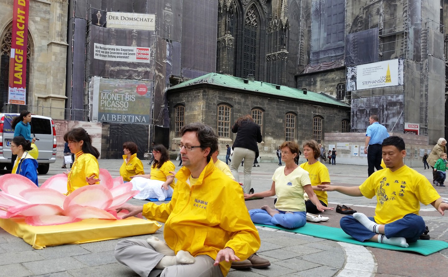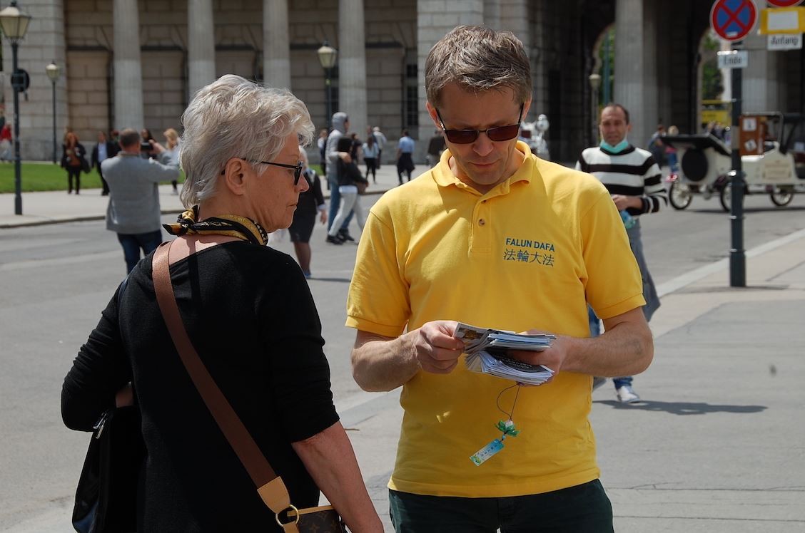 法轮功学员维也纳庆祝法轮大法日,炼功,传播真相