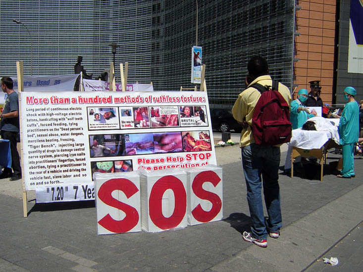 法轮功学员在比利时布鲁塞尔揭露中共活体摘取器官的罪恶并吁欧盟制止中共暴行2006-7-18