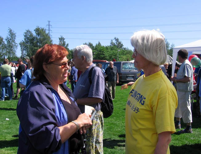 法轮功学员在芬兰赫尔辛基玛堤斯河节洪扬大法及揭露中共迫害的真相2007-6-3