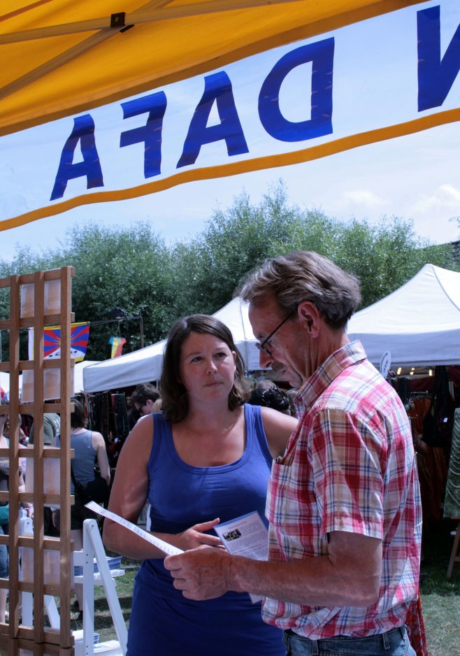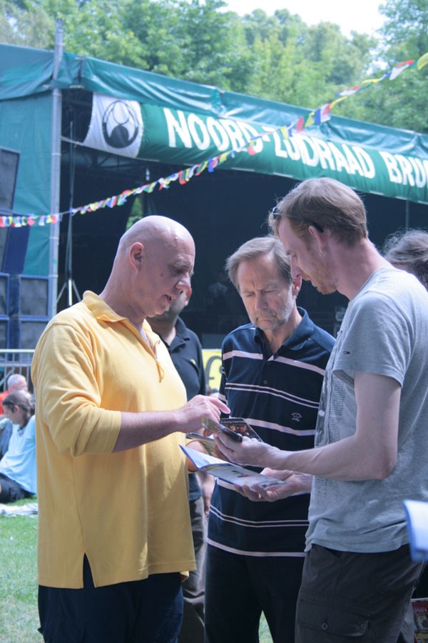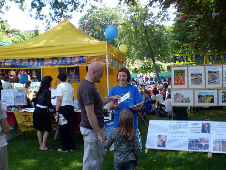 法轮功学员在"和平节(Vredefeesten)"活动上征签,民众纷纷支持反迫害