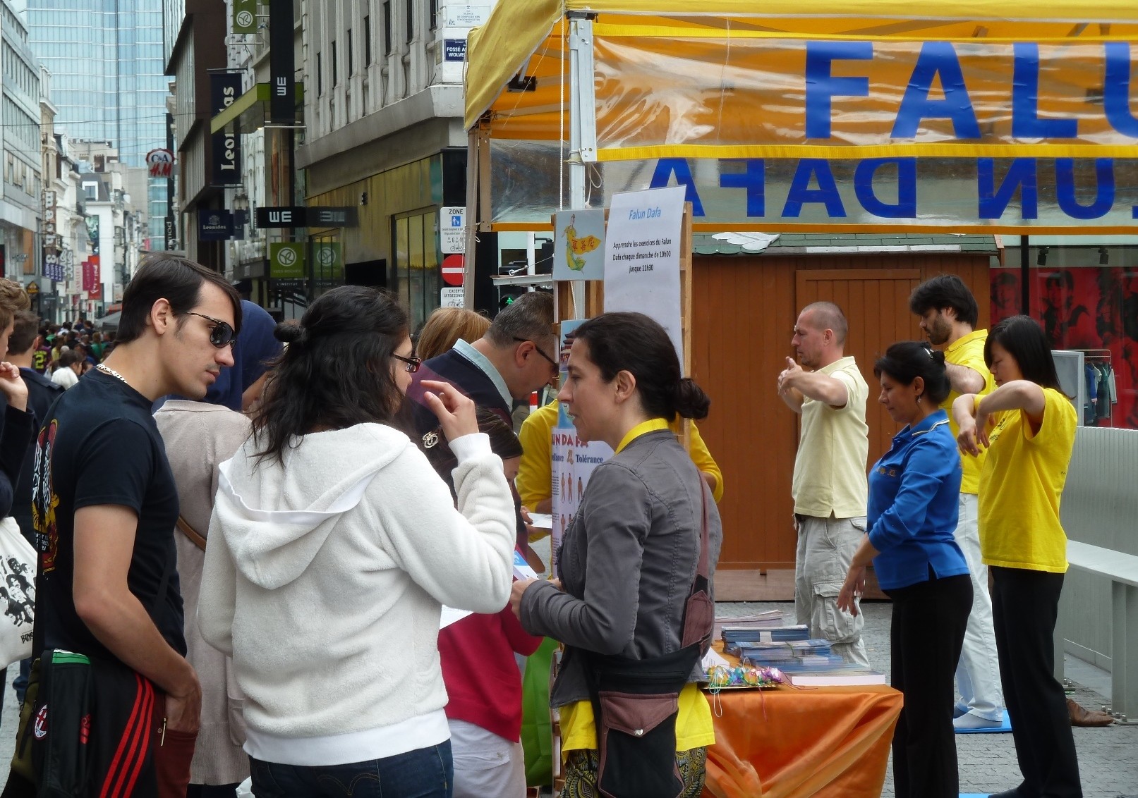 学员在布鲁塞尔市中心向世人广传真相,揭露迫害,