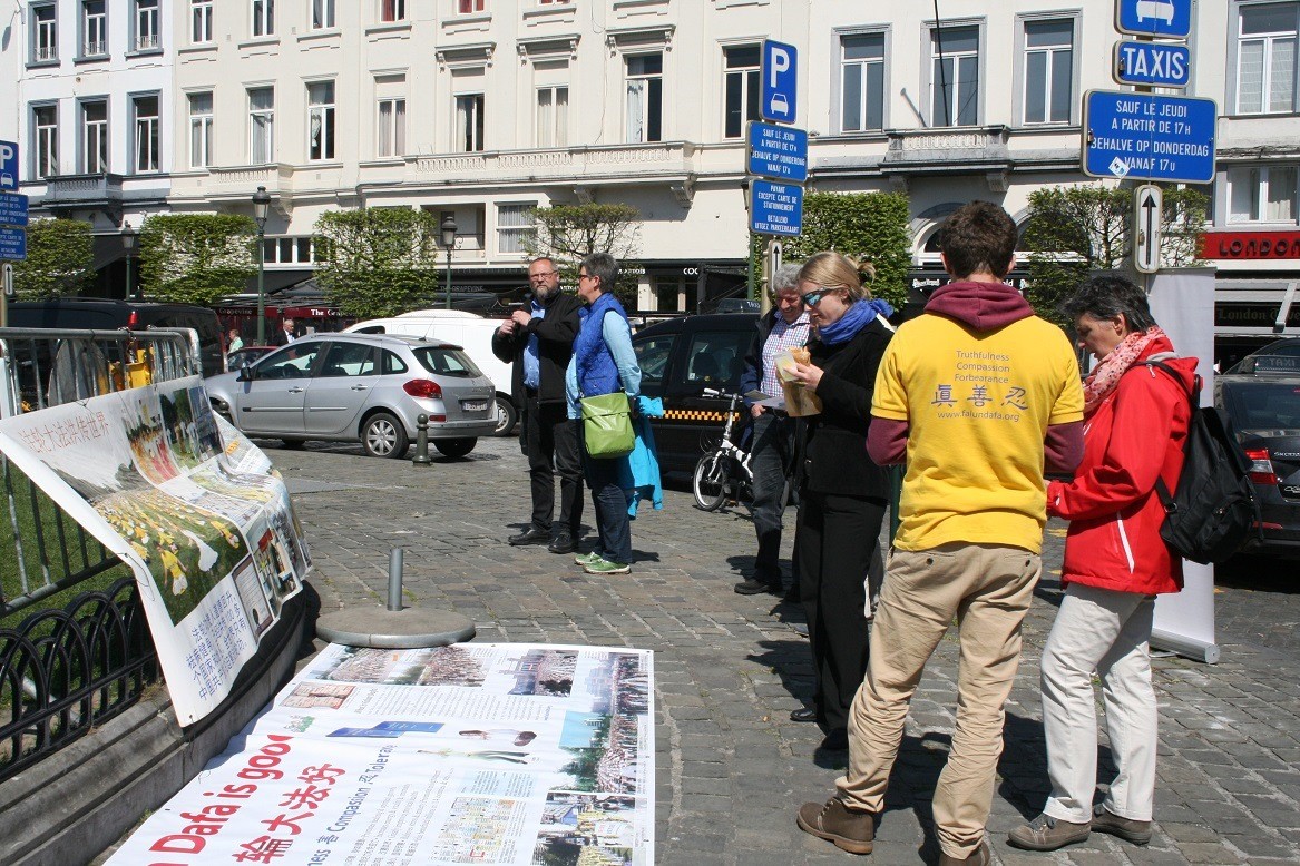 法轮功学员在布鲁塞尔举办讲真相反迫害活动