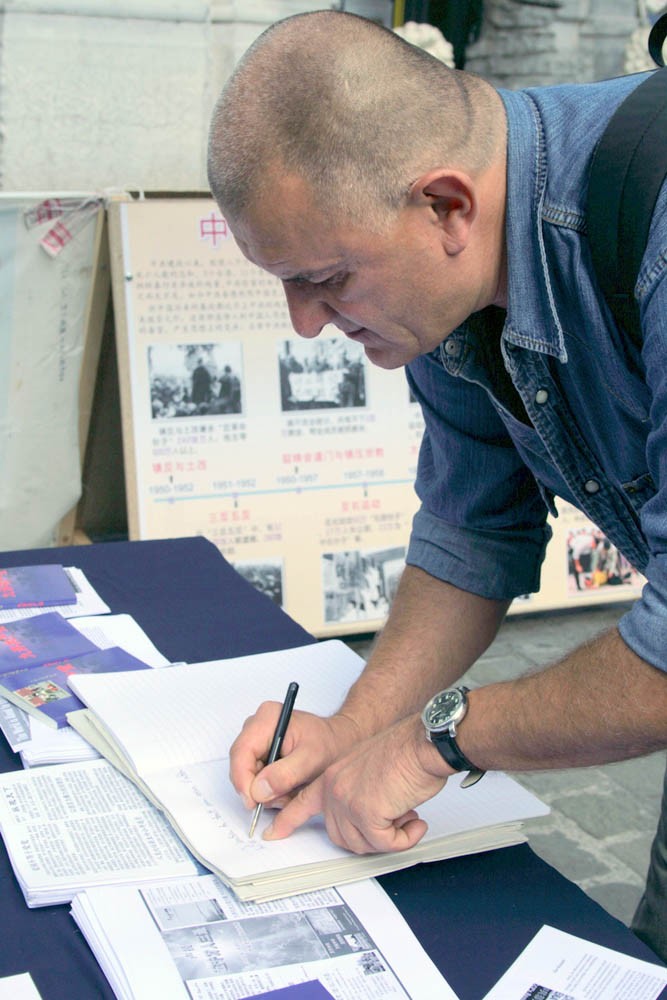 比利时退党服务中心在布鲁塞尔的中国城举行活动,声援六千多万退出中共,民众签名声援