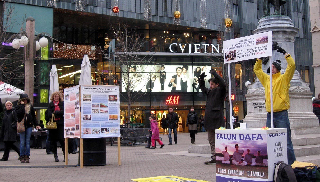 克罗地亚大法弟子在首都萨格勒布洪法講真相