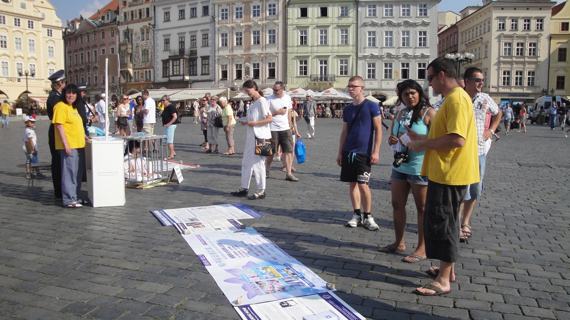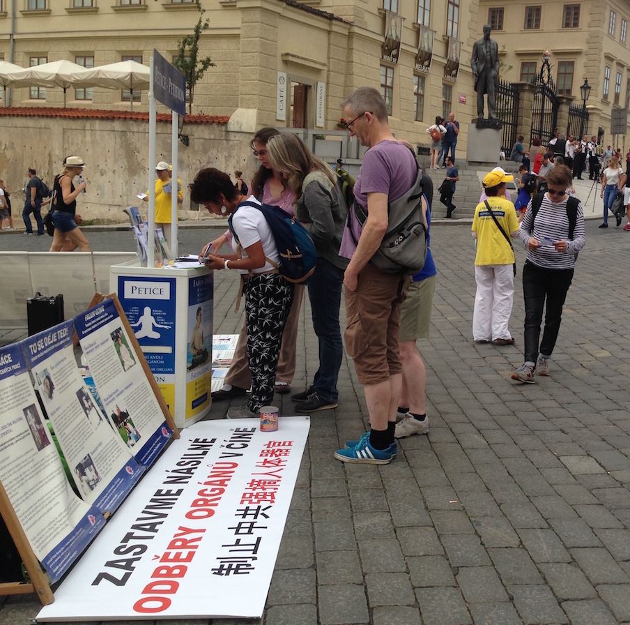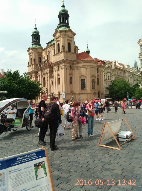 法轮功学员在布拉格景点传播真相 及反迫害征签活动