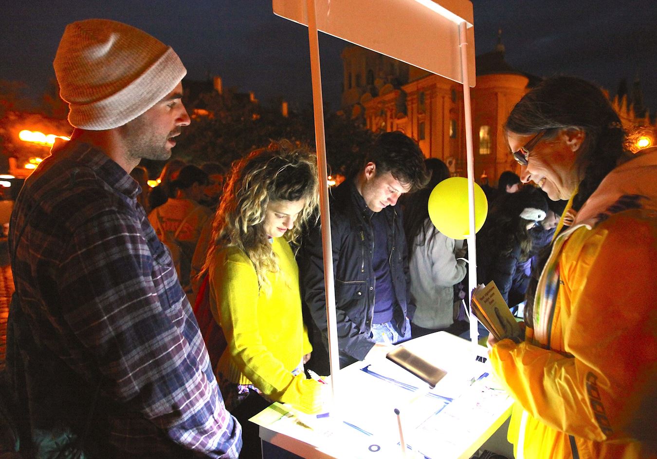 人们在布拉格城堡前了解真相并在反迫害请愿书上签字