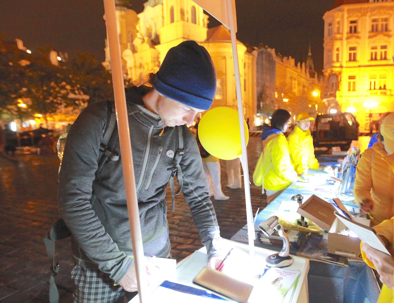 法轮功学员在捷克国家意识纪念日,民众签名声援法轮功学员反迫害