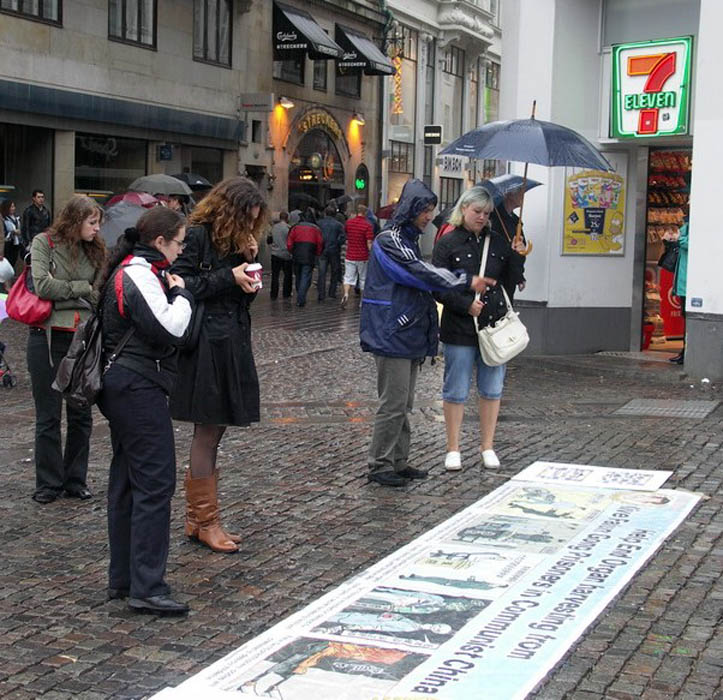 法轮功学员"七二零"在丹麦哥本哈根商业街广场讲真相图为真相图片引起许多人关注2007-7-20