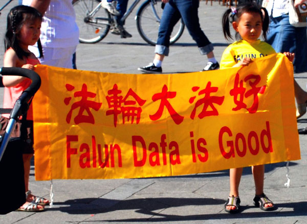 丹麦法轮功纪念学员在哥本哈根市政厅广场纪念四二五