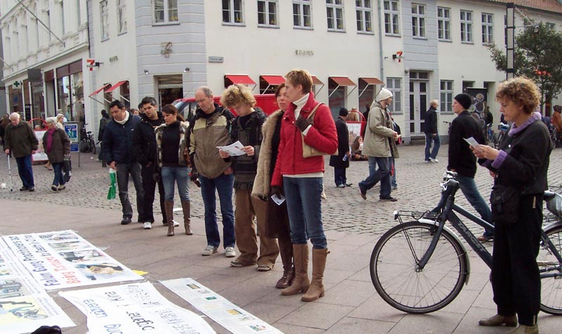 法轮功学员在丹麦Fyn五个城市举行为期三天的讲真相活动。