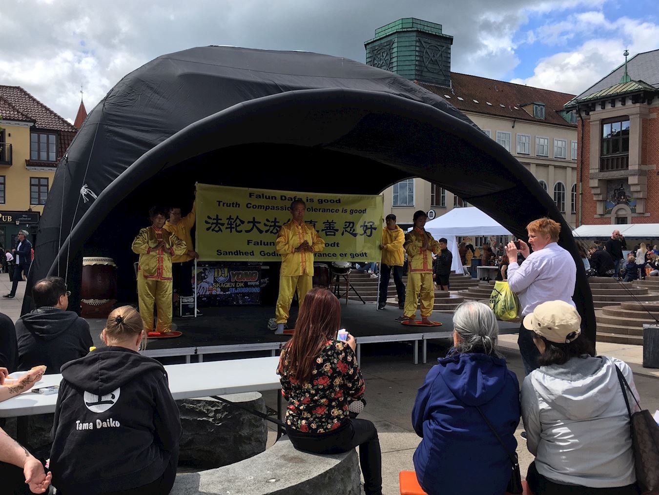 法轮功学员应邀参加丹麦RY市的多元文化节,介绍大法的美好,演示功法并揭露中共迫害的罪行