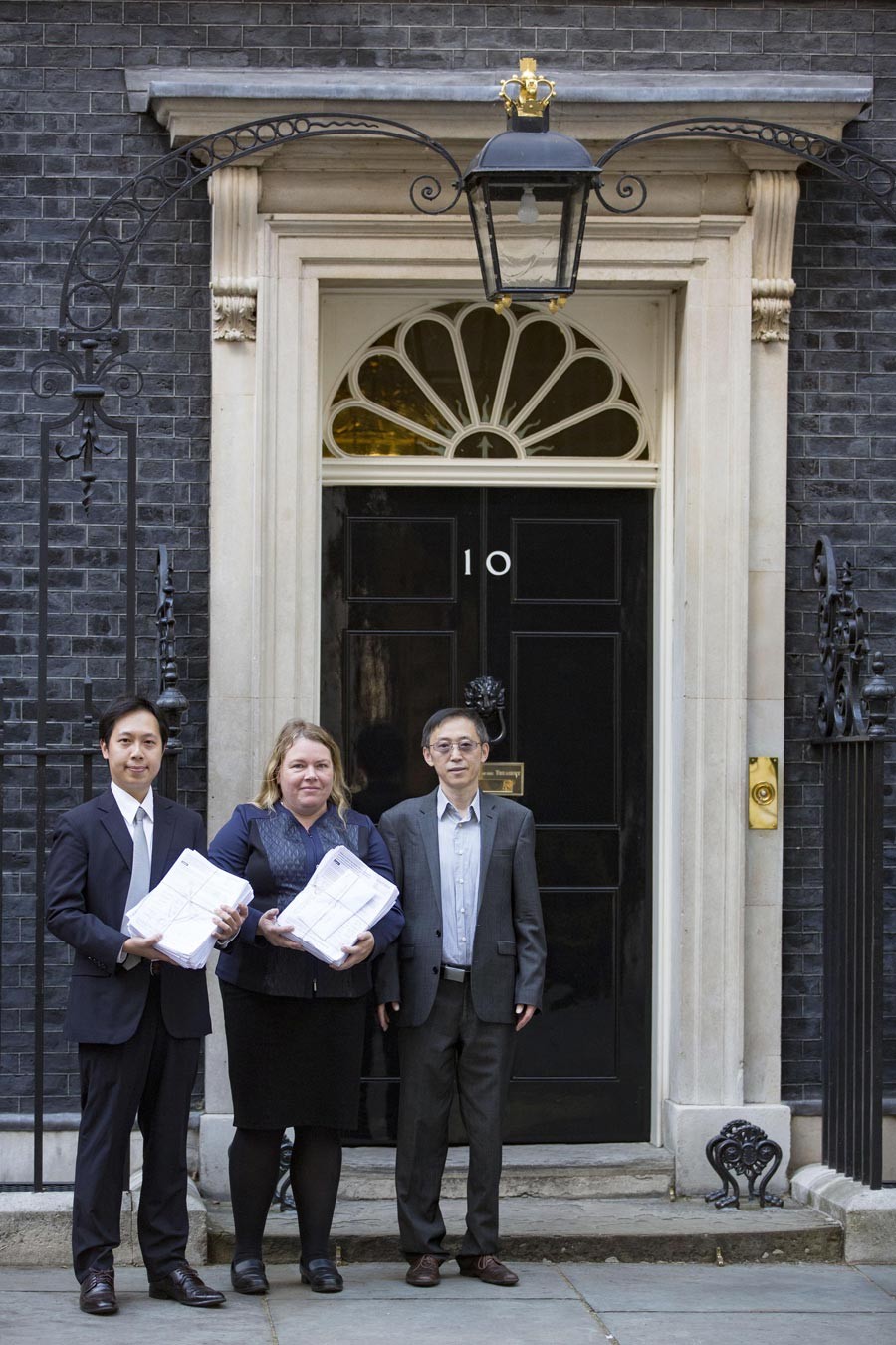 谢卫国博士和卡尔顿议员在英国国会大厦前营救遭受迫害的清华学子