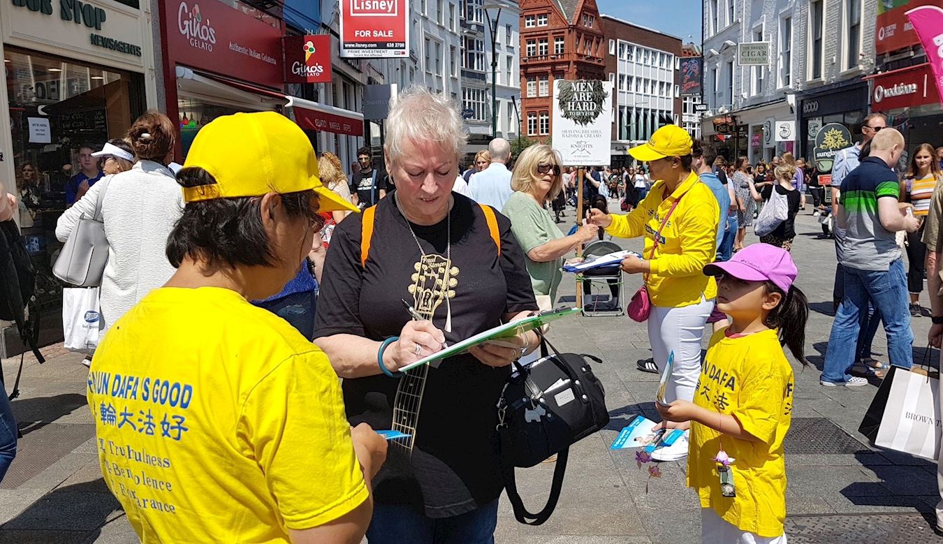 都柏林民众驻足了解真相,支持法轮功反迫害