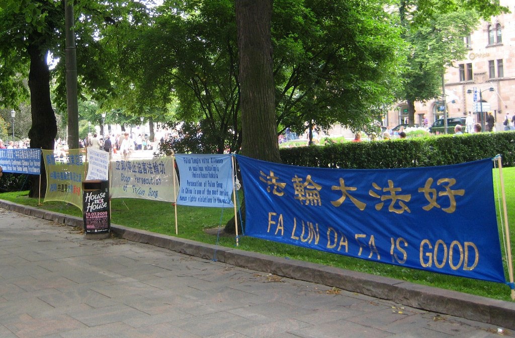 中共副总理访问芬兰 法轮功学员抗议迫害