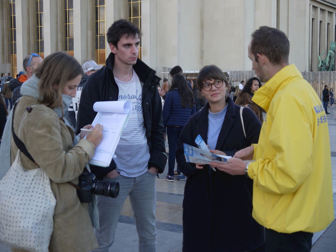 巴黎人权广场 中西游客支持法轮功图为民众签名支持反迫害
