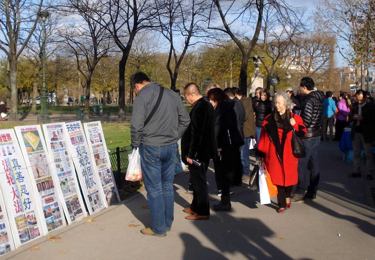 在巴黎讲真相 民众仔细阅读真象资料