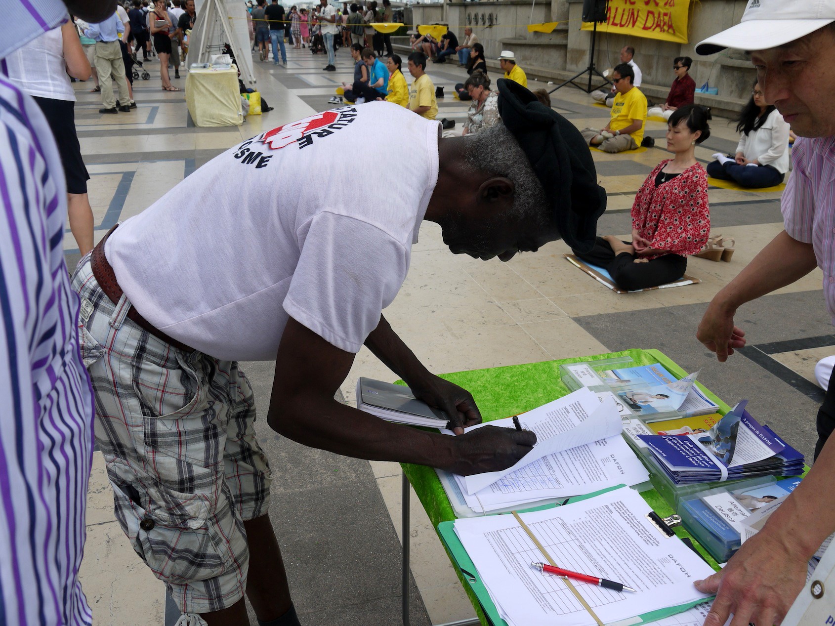 七•二零巴黎人权广场上的反迫害集会,征签活动