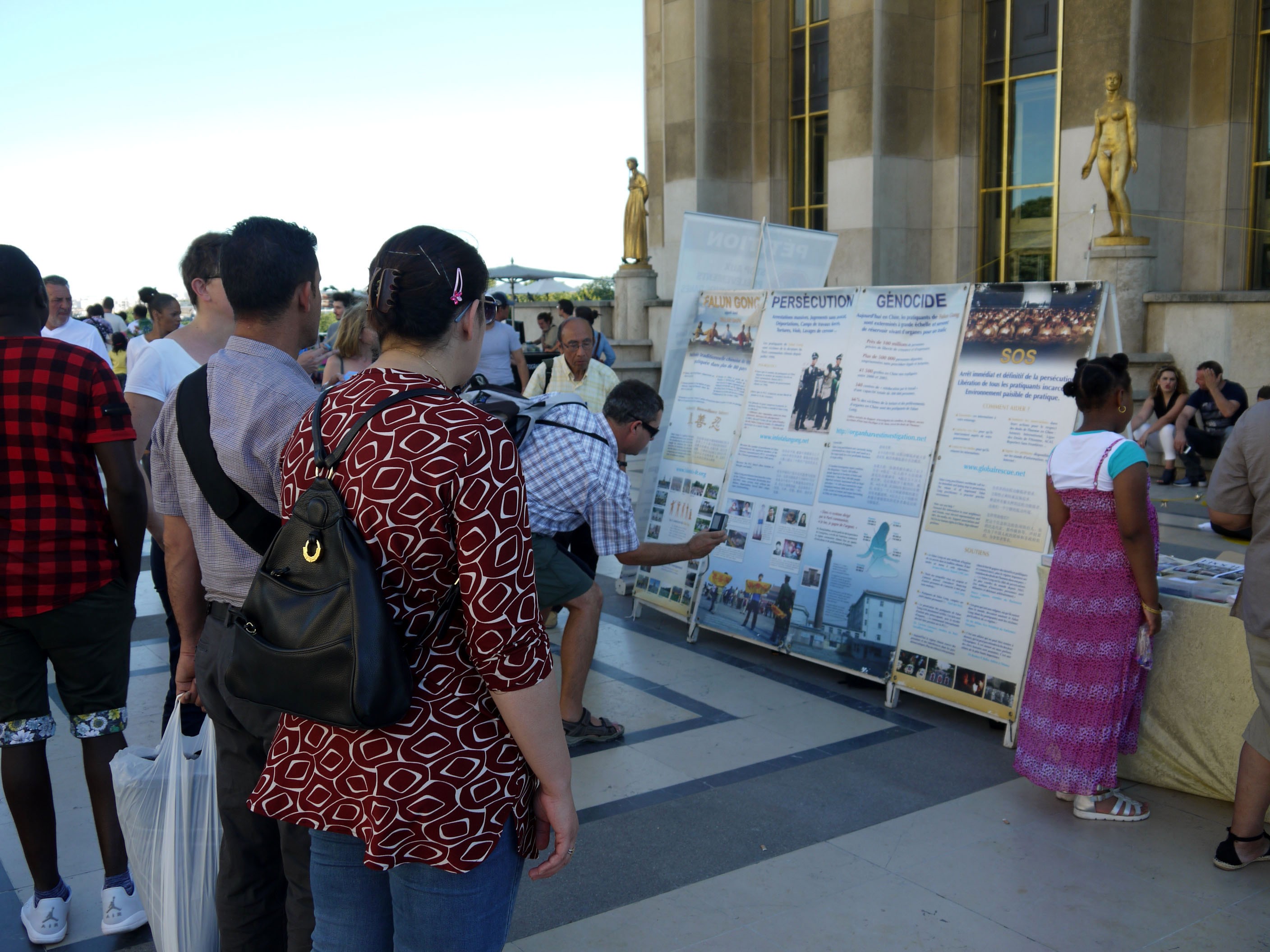 巴黎人权广场,民众驻足观看真相展板