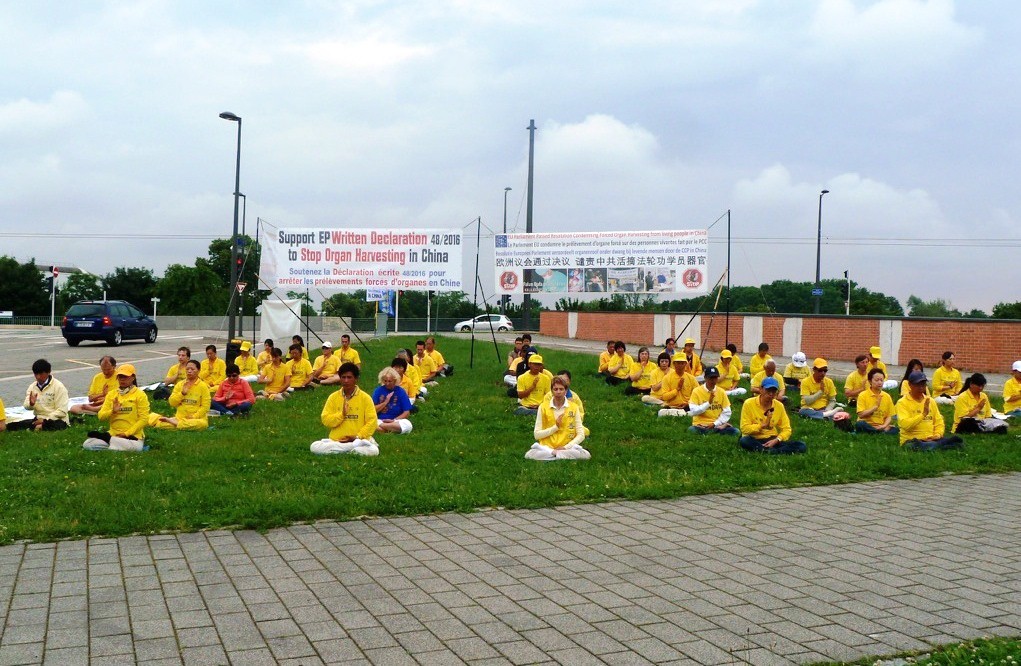 法轮功学员和平请愿,呼吁议员签署"书面声明",要求欧洲议会调查中共强摘并贩卖人体器官的罪行