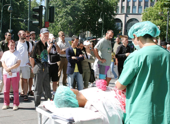 世界法轮大法日 德国学员以真人模拟的方式揭露中共活体摘取法轮功学员器官的暴行2006-5-13