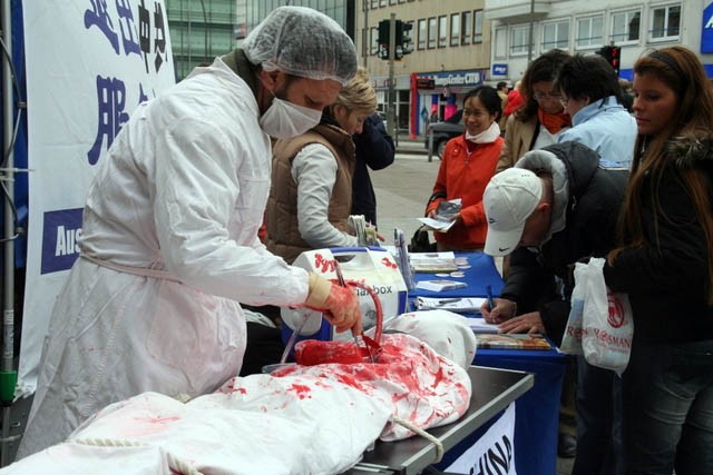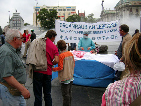 法轮功学员在慕尼黑揭露中共活体摘取器官等罪行。