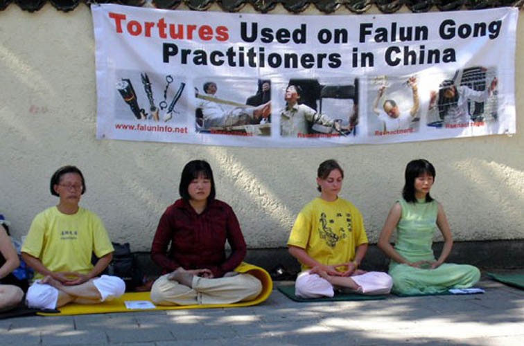德国法轮功学员八国峰会期间抗议中共迫害法轮功 呼吁各国元首及中共党魁胡锦涛必须被立即制止中共的暴行2007-6-7
