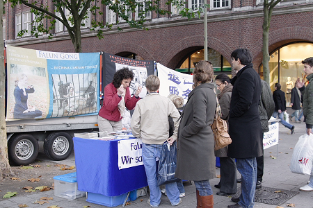 法轮功学员在Duesseldorf市中心举办信息日,迫害震惊德国市民