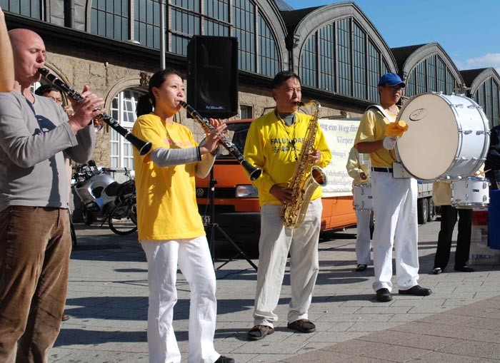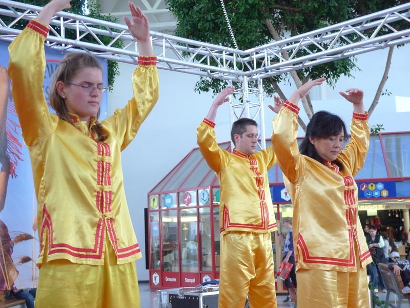 法轮功学员参加德国不来梅健康周活动,演示祥和,优美的功法