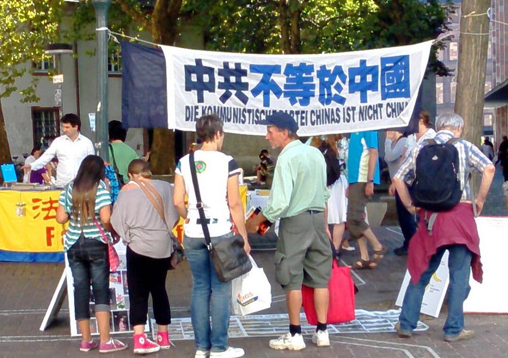 法轮功学员在不来梅举办信息日民获悉中共迫害法轮功真相