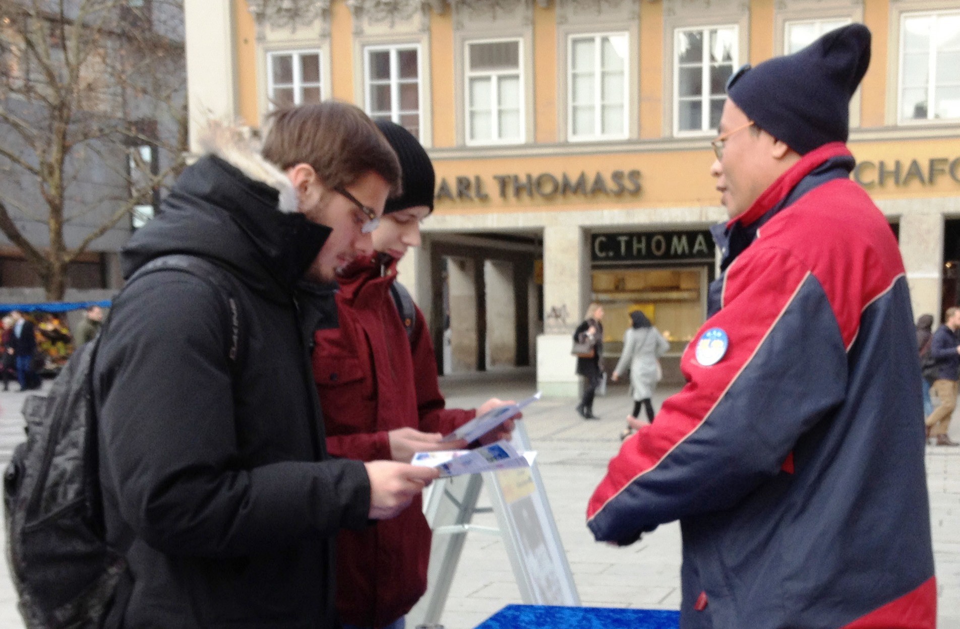 法轮功学员在慕尼黑闹市举办活动揭露中共的迫害,获得民众的支持