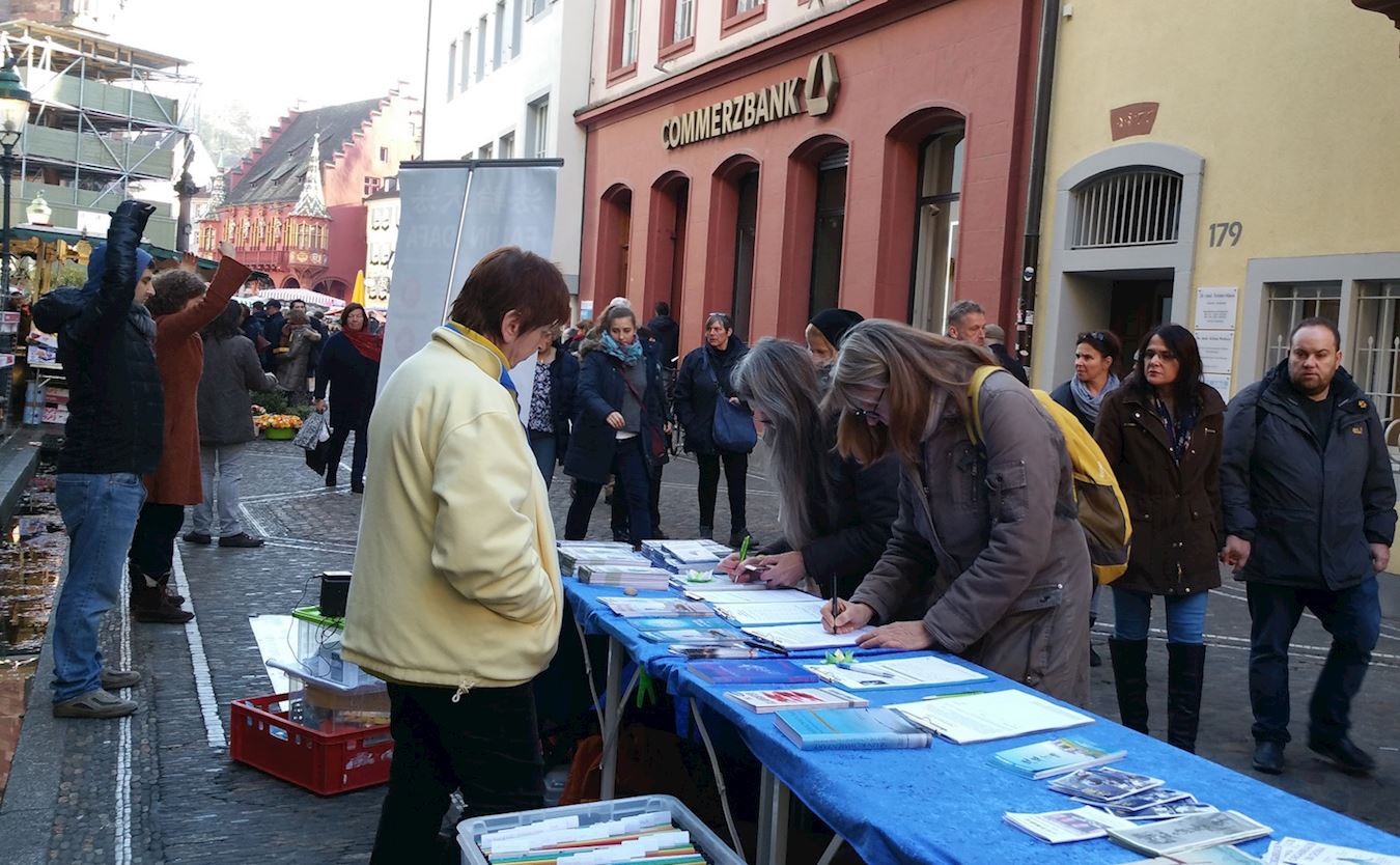 法轮功学员在弗莱堡征签,促调查中共活摘器官