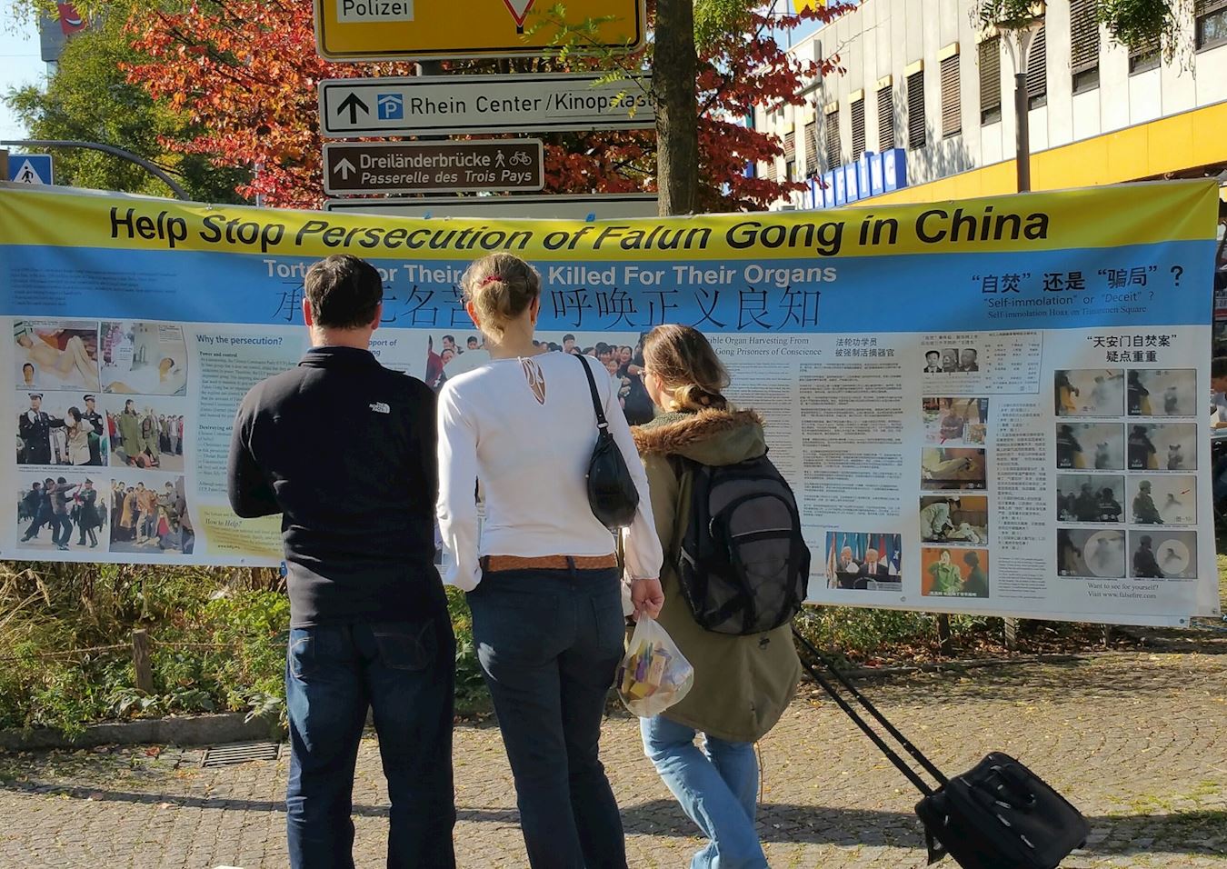 法轮功学员在弗莱堡市举办信息日,曝光中共活摘器官的罪行并征签。