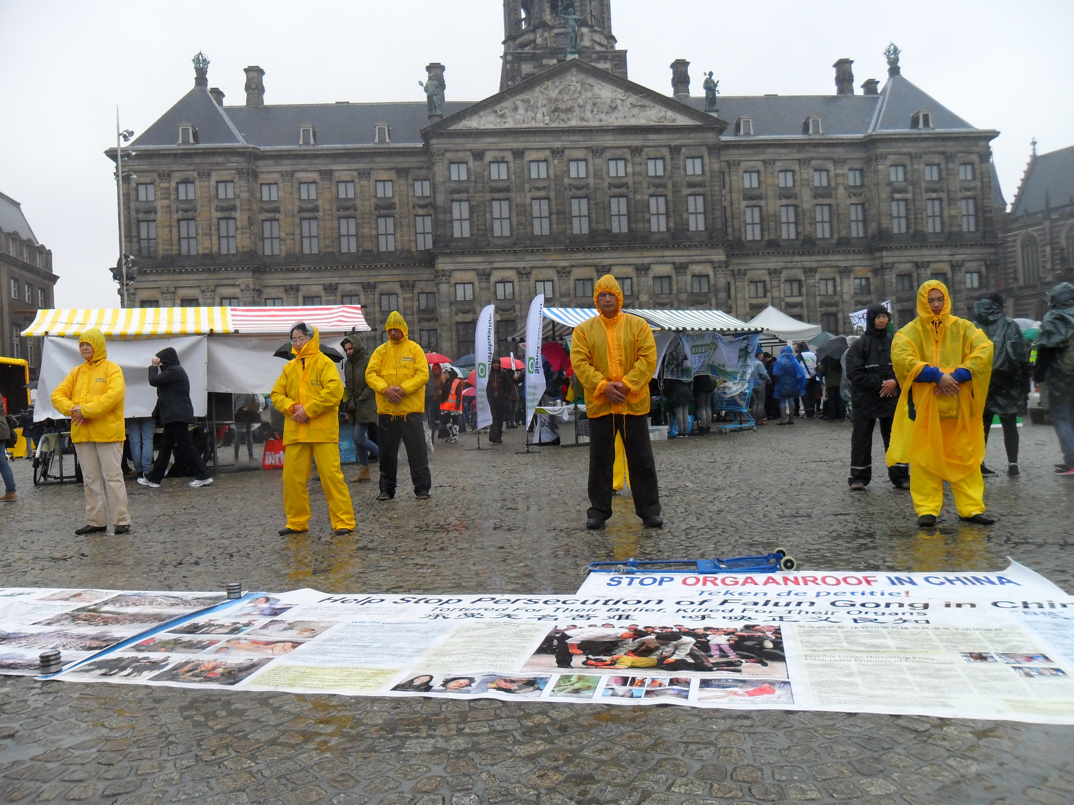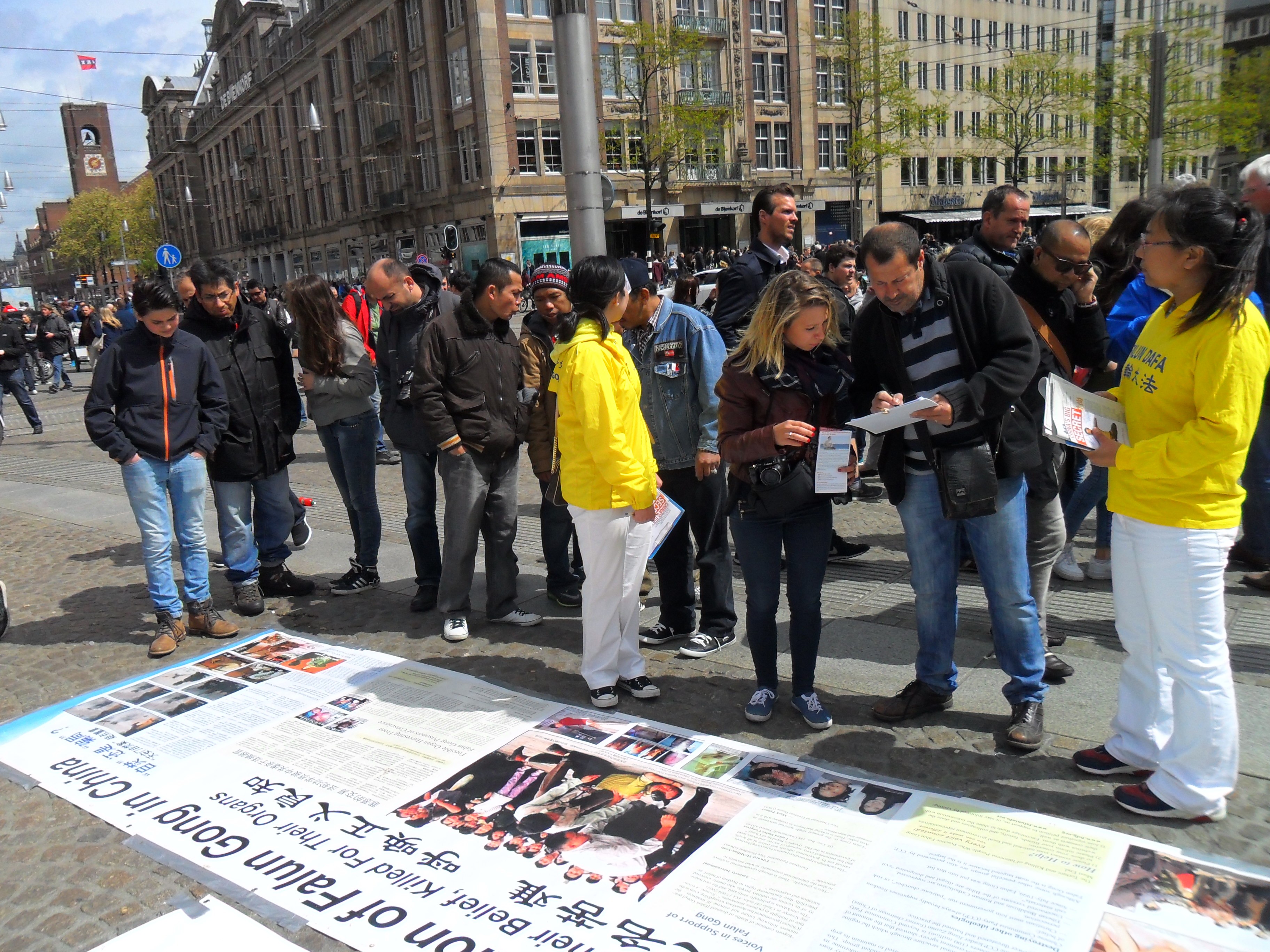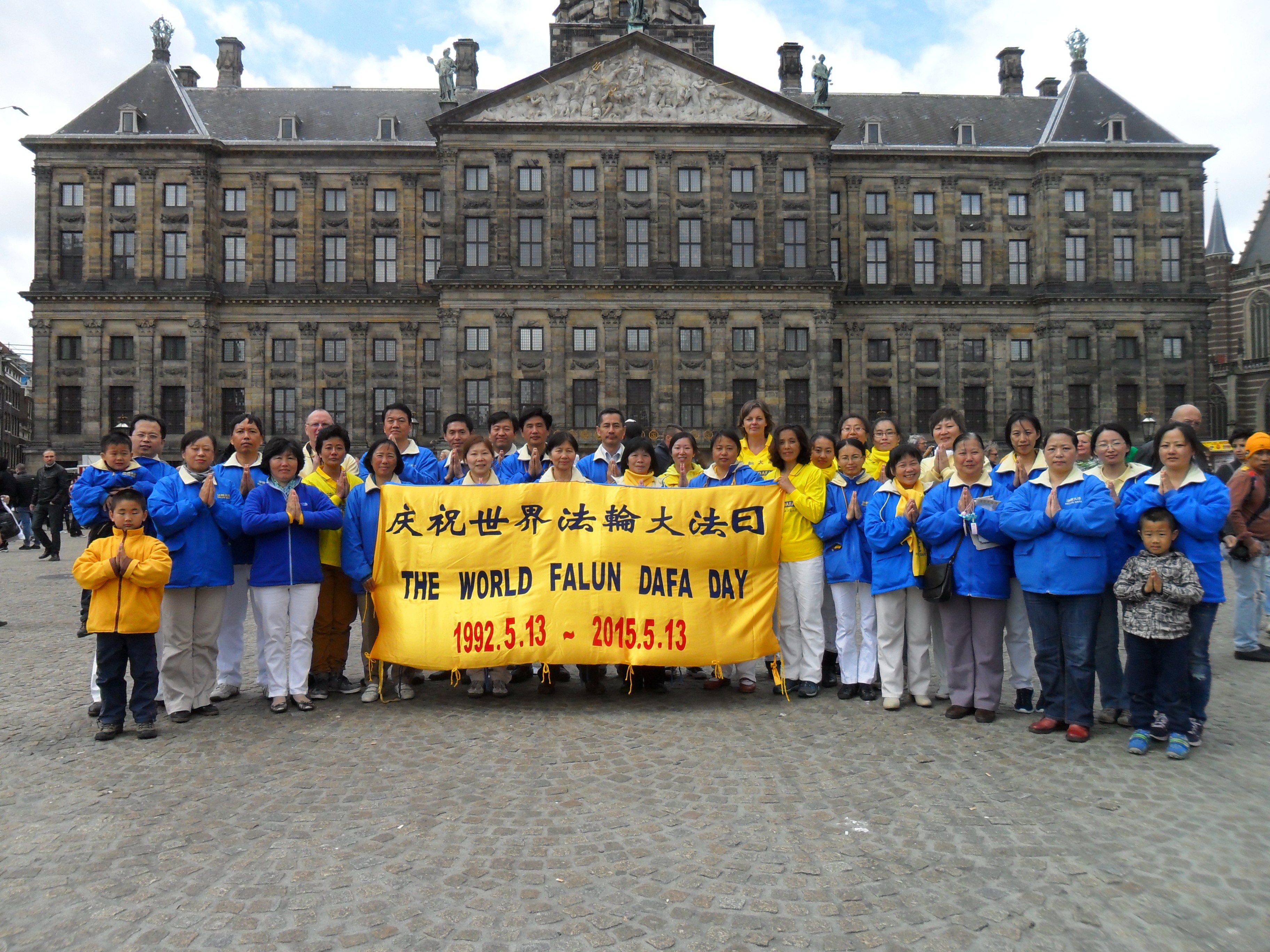 法轮功学员在阿姆斯特丹的皇宫门前讲真相,庆祝"世界法轮大法日"