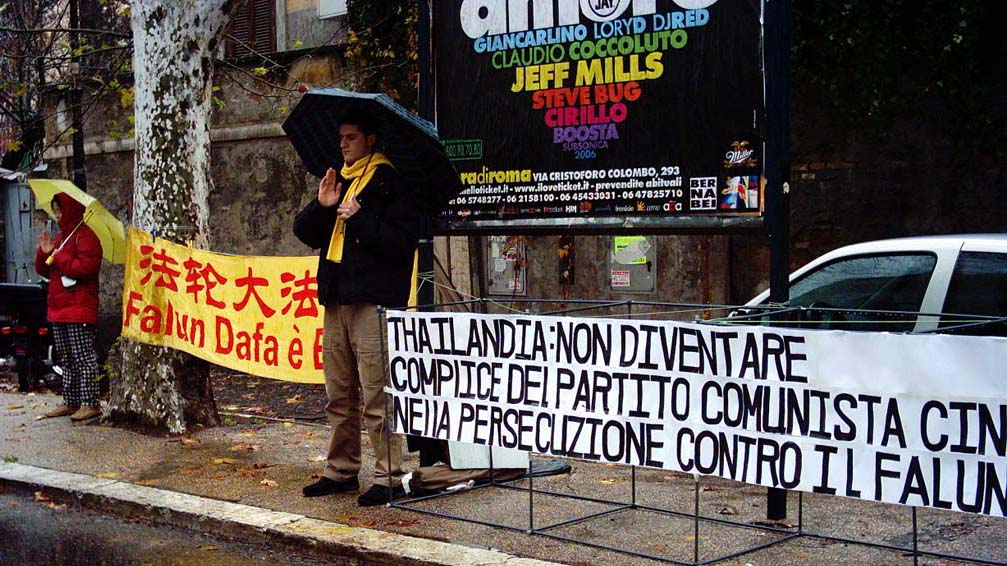 意大利罗马的法轮功学员到泰国大使馆抗议并递交公开信 要求泰国不要屈服中共的压力而成为迫害法轮功的帮凶2006-1