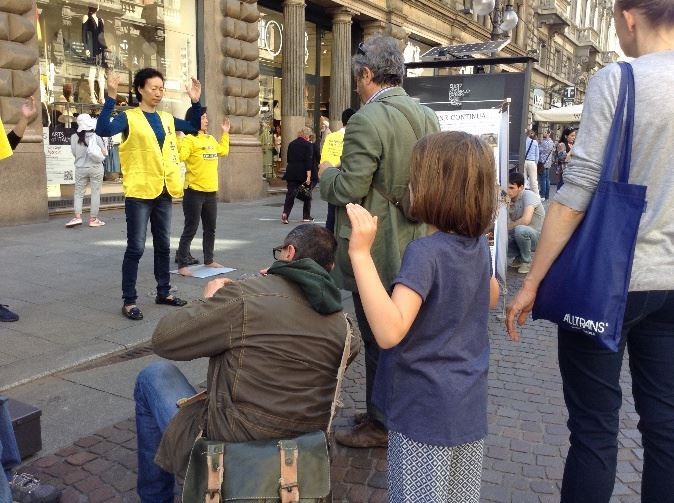 意大利法轮功学员再次来到米兰卡尔杜西广场举办反酷刑展 向世人讲述法轮功学员在中国遭受的邪恶迫害