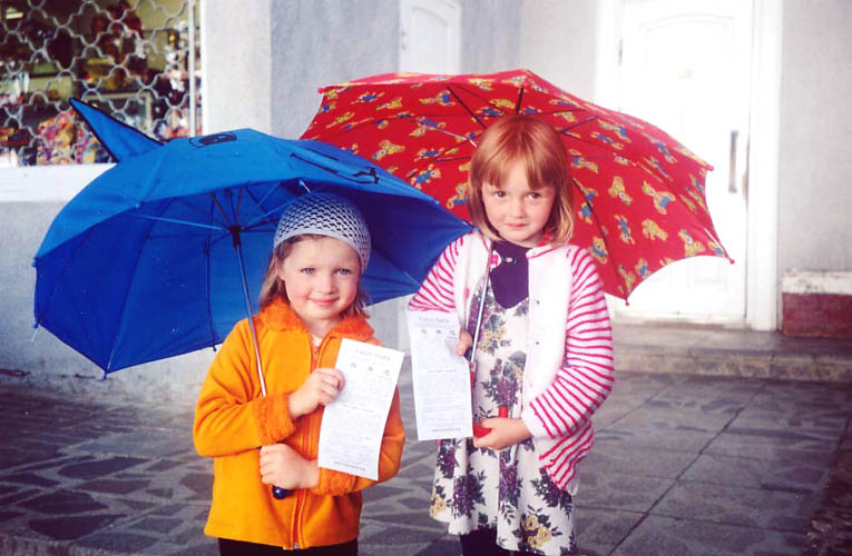 法轮大法在立陶宛--这是两位得到大法资料的小姑娘,她们真是幸运的孩子。