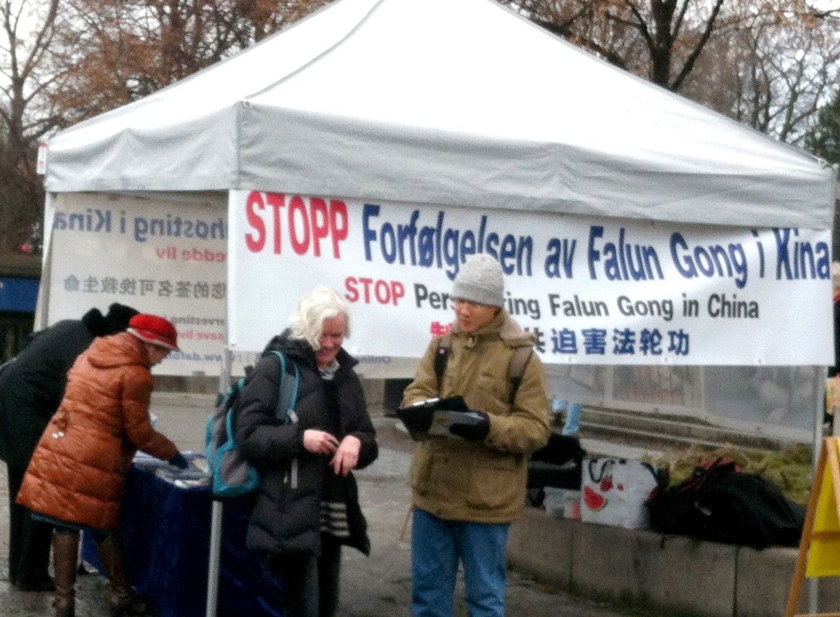 挪威斯塔万格人了解了法轮功在中国遭受的迫害