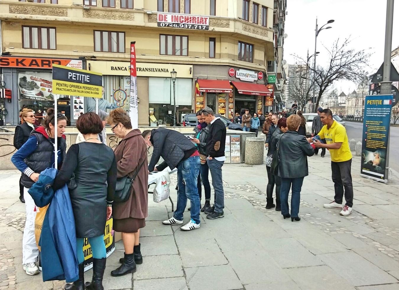 布加勒斯特市中心,罗马尼亚民众签名支持法轮功反迫害