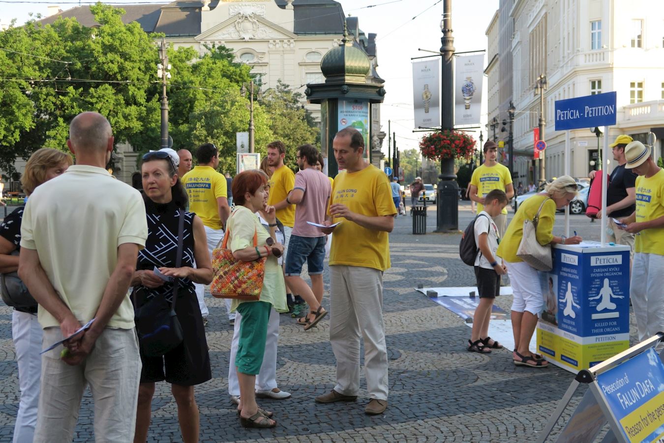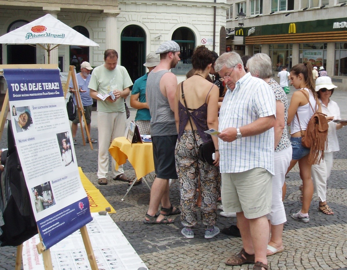 斯洛伐克法轮功学员到布拉迪斯拉发市中心广场介绍法轮功,并希望人们关注发生在中国的迫害