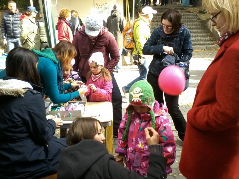 法轮功学员参加斯洛伐克奥秘节受欢迎 图为群众在了解真相
