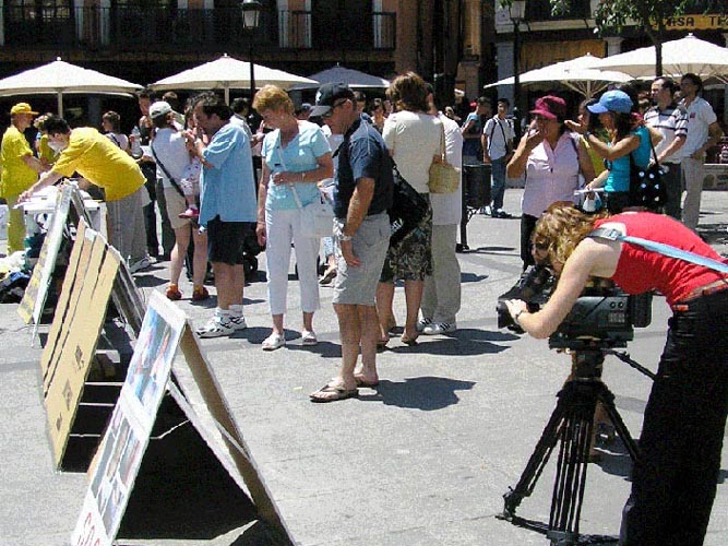 学员在西班牙瓜达拉哈拉市介绍法轮功及目前发生在中国大陆对法轮功学员的残酷迫害