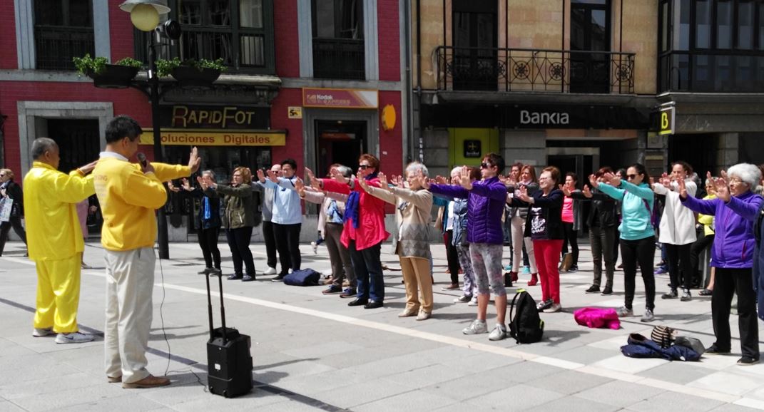 法轮功学员应邀来到Oviedo市介绍法轮大法并教授五套功法