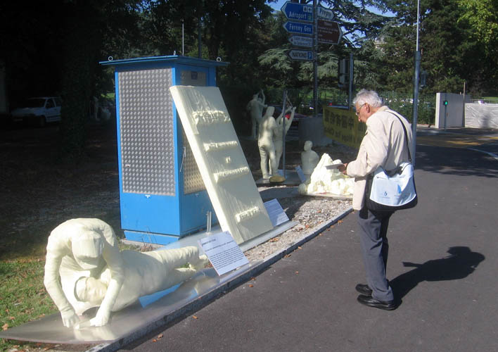 联合国人权理事会第二次会议在日内瓦召开期间 瑞士法轮功学员在日内瓦联合国门前举办"九评"塑像展揭露中共残酷迫害法轮功的罪行2006-9