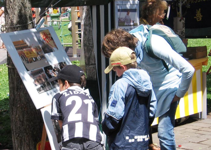 瑞士法轮功学员2005年6月18日在圣加仑举办反酷刑展,众多路人了解真相