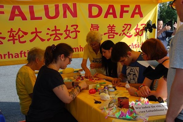 法轮功学员参加伯尔尼举办的亚洲节,展会期间游客络绎不绝